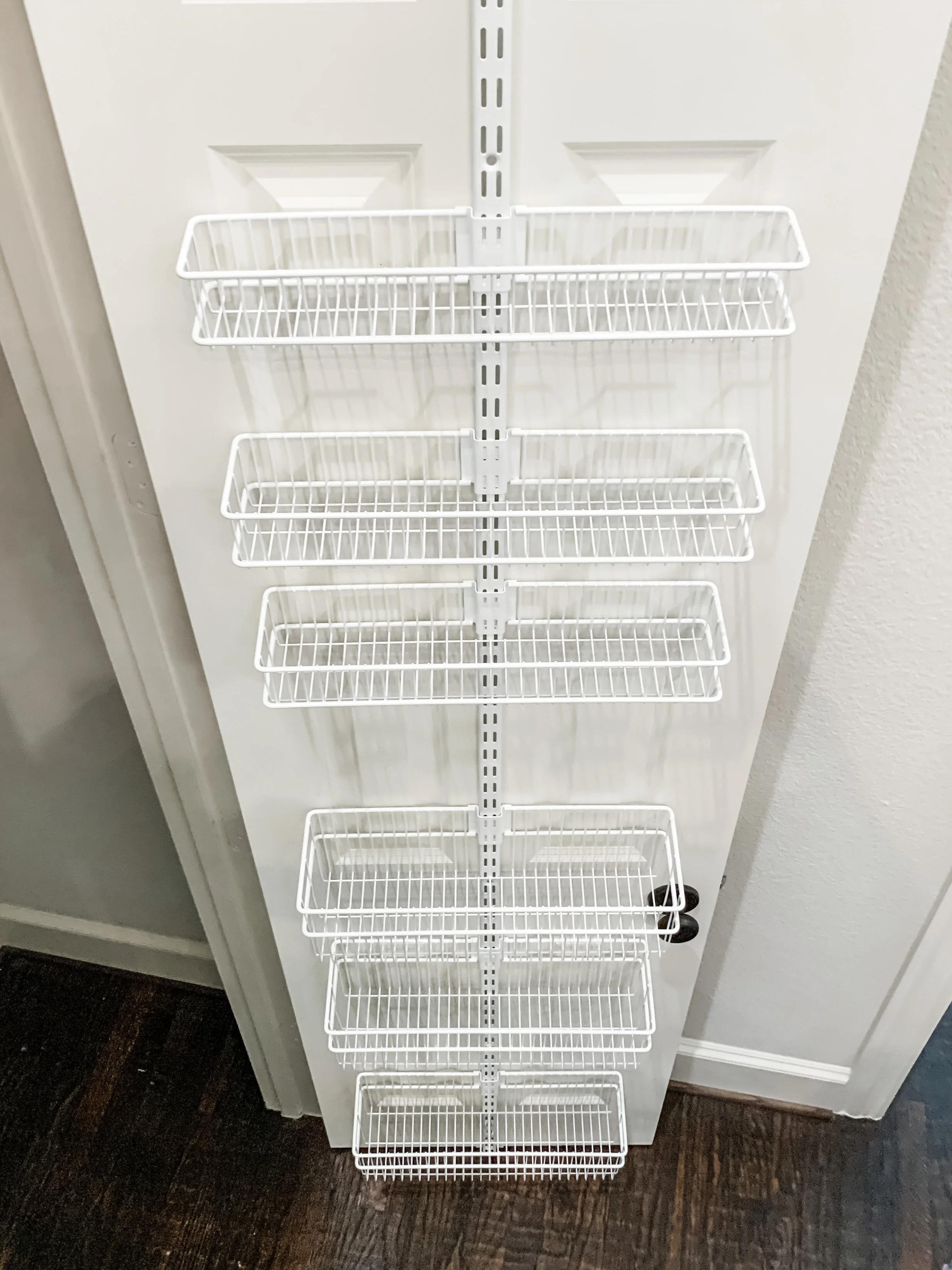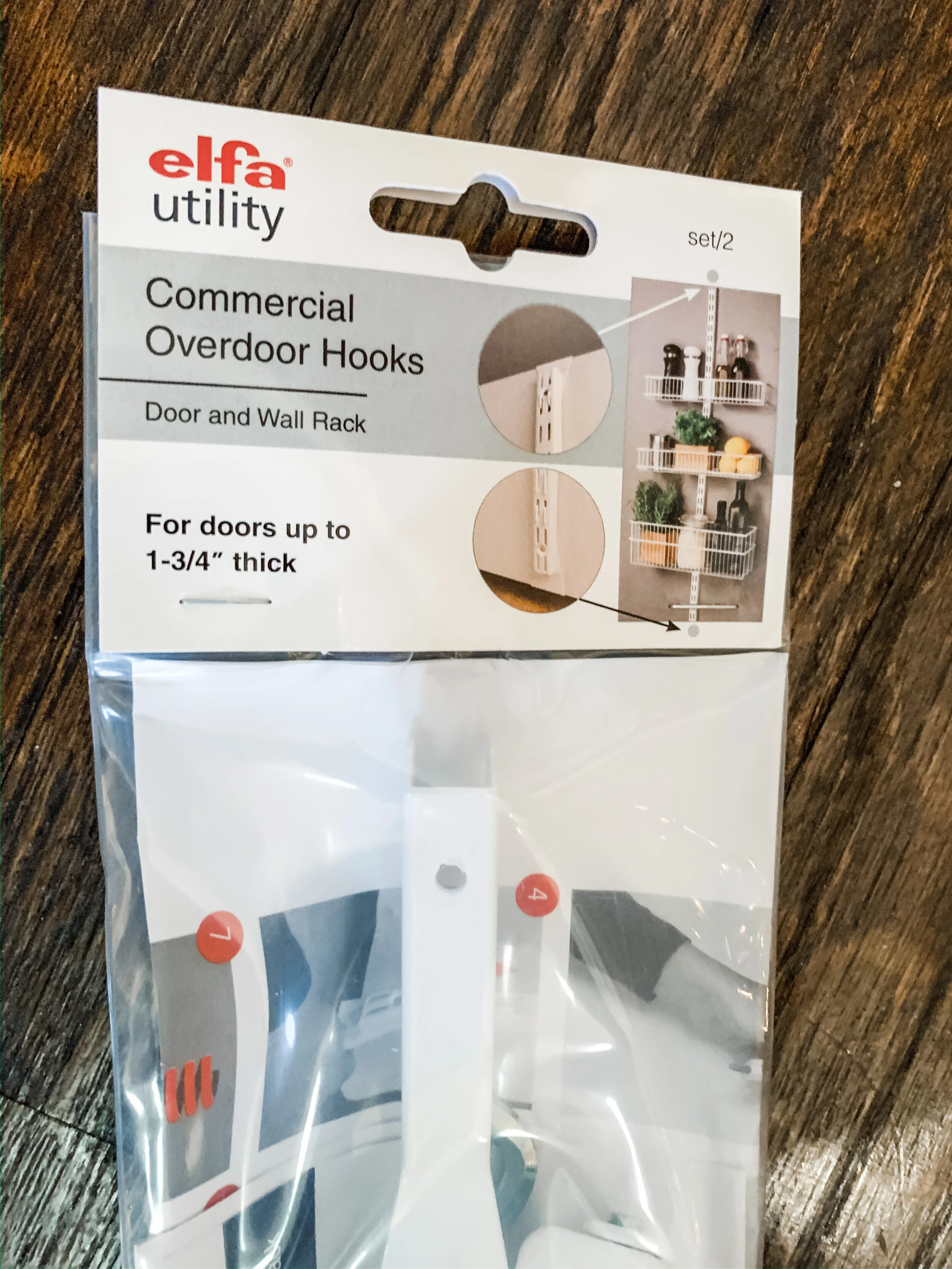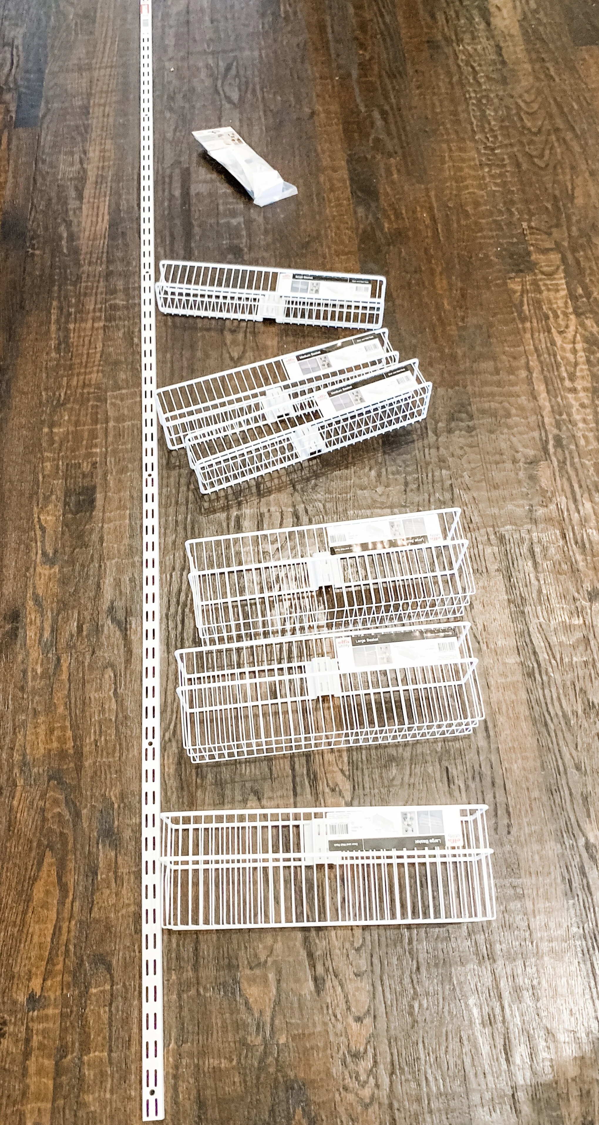 I decided to take advantage of the Elfa Sale and put in an over the door system! It's so easy to install! Here are the parts I started with: