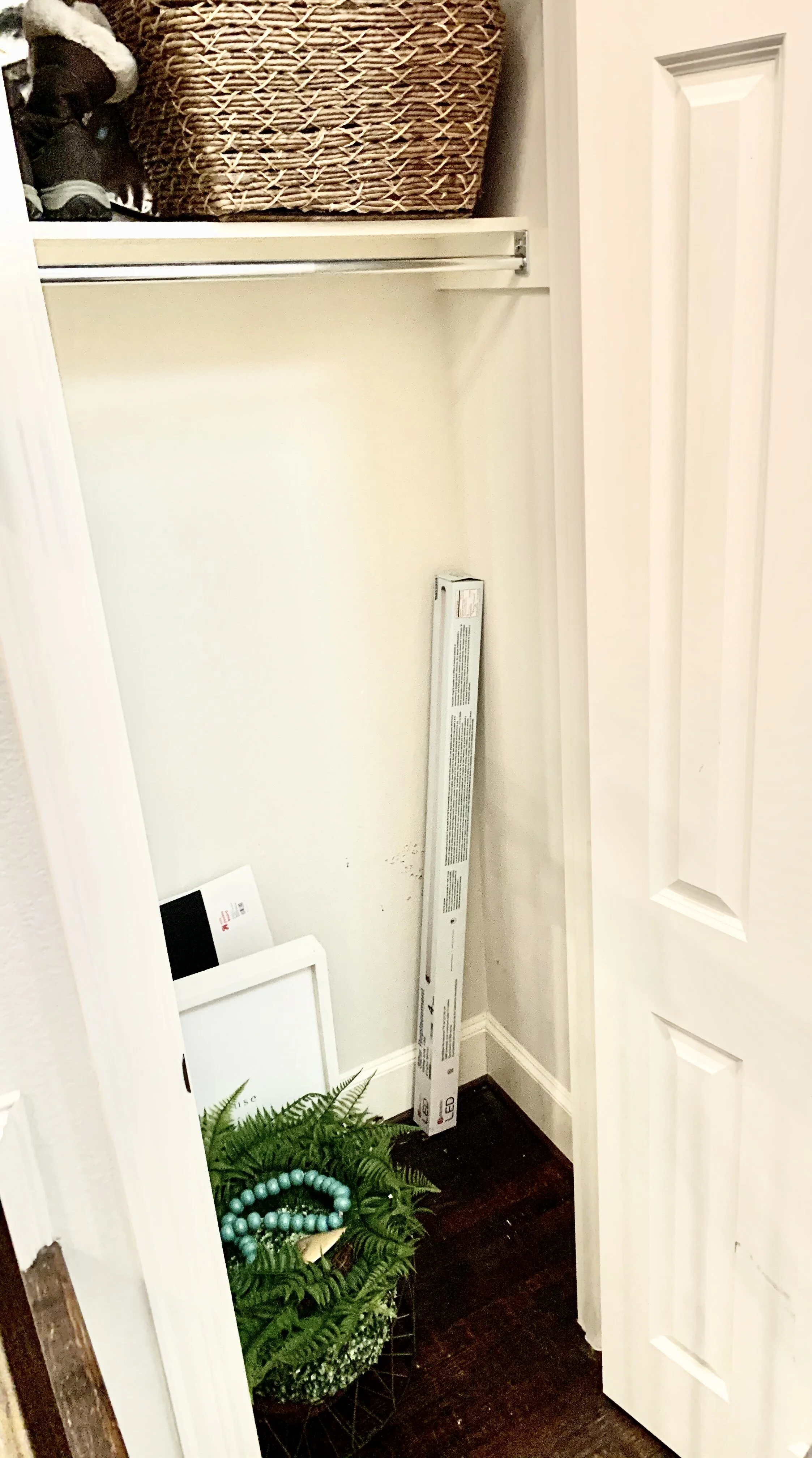 Where do I start is a question I get a lot! My answer is simple. Start somewhere. Start small. Create small victories so you feel accomplished. Small victories add up to bigger victories and pretty soon you've done it!This year I decided to take my own advice and start small. I have several closets in my home that don't have a "set purpose". We are empty nesters now and that created several empty bedrooms and closets. I want those closets to be on my New Year, New Goals list.One closet in particular is the one right outside my office. I am blessed to have two coat closets in this house plan. We use one for coats, and the other one was being used for all our winter gear. When we moved here from Colorado in 2012, we had all the outdoor snow gear, so I designated that closet as the "winter" closet. Fast forward to being back in Texas a while made me realize we hadn't used that gear in years. So I sold most of it on my neighborhood Facebook market place, and all that was left was this.... Two pairs of boots, some old videos, extra light bulbs, and off season decor storage during Christmas!