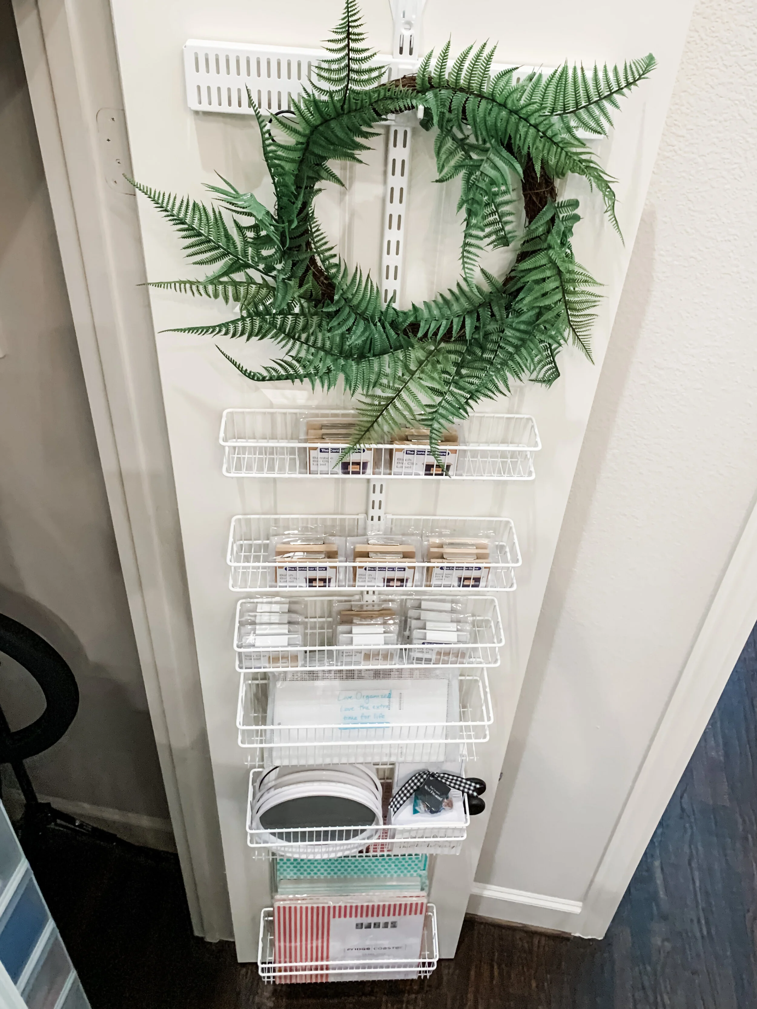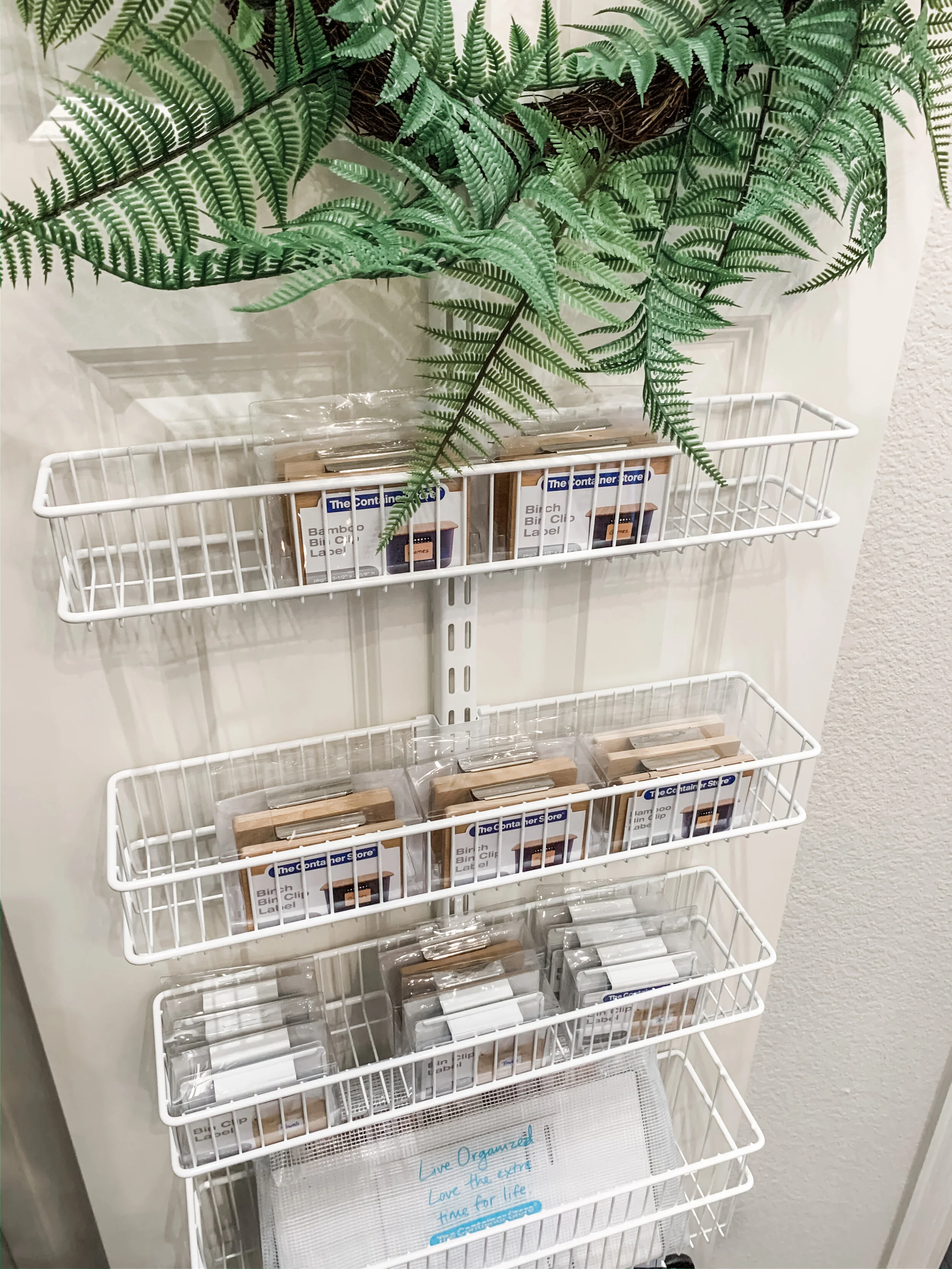 Next, I added in all the back stock I had in my office and car. This system is great because you can change the height of each basket to fit your needs.