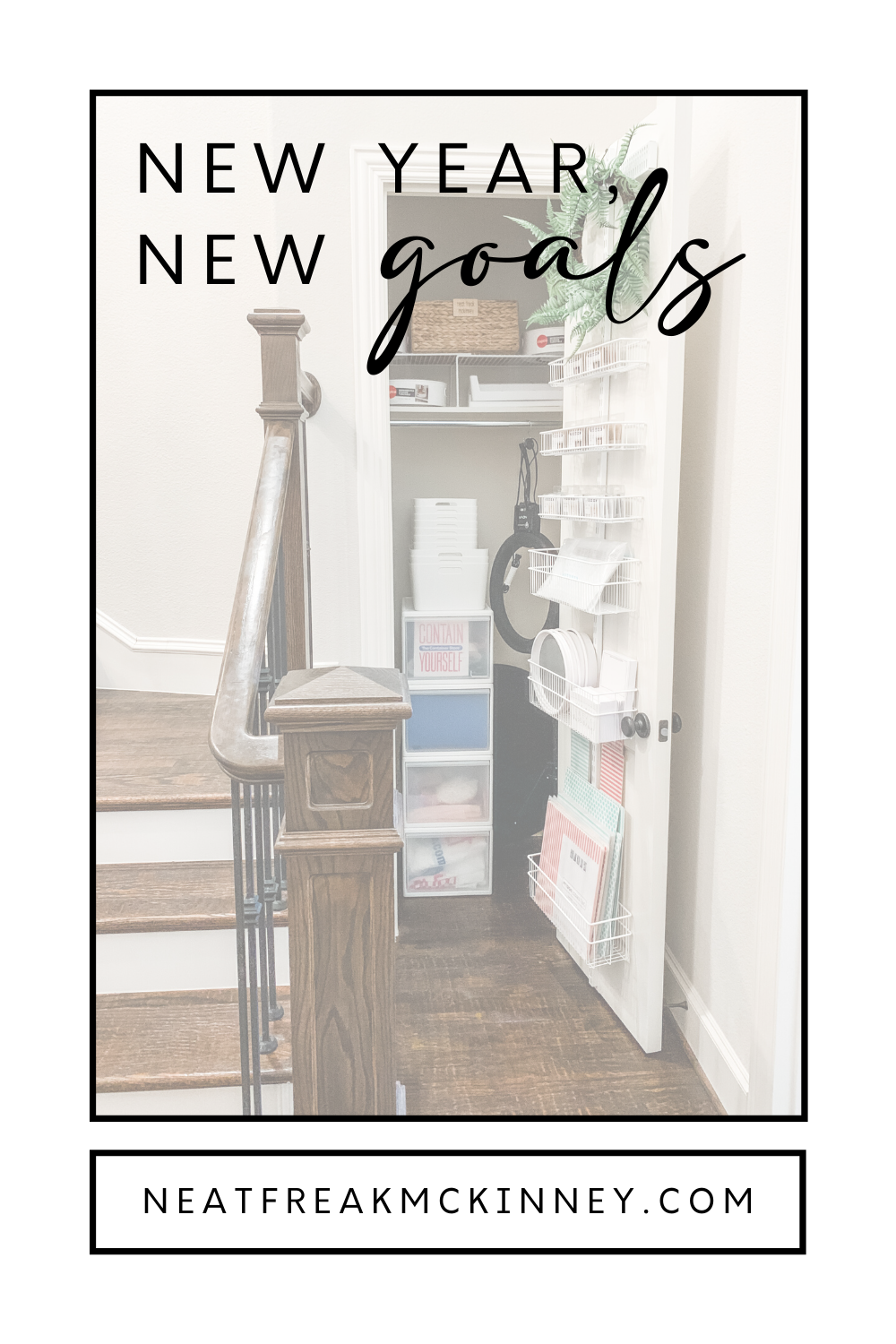 This closet is my first project on my New Year, New Goals list. I decided to better utilize this closet for all my Neat Freak McKinney back stock. I like to keep my favorite organizing products on hand, and my office and car were overflowing. Enter the extra coat closet!